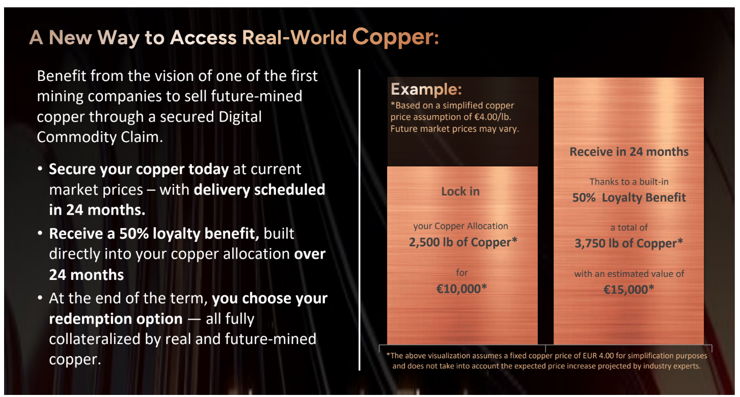 Copper‑Pay is underpinned by real and future‑mined copper, sourced from Tempestas’ NI 43‑101 verified reserves. Copper Pay offers a streamlined process for purchasing copper.